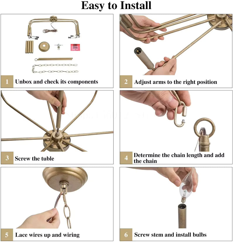 A striking fusion of Nordic simplicity and rustic farmhouse charm, this 8-light pendant chandelier makes a bold yet timeless statement in any space. Featuring a refined black matte frame with elegant gold accents, its clean lines and open structure create a sense of lightness and balance - perfect for modern kitchens, dining areas, or open-plan living spaces.