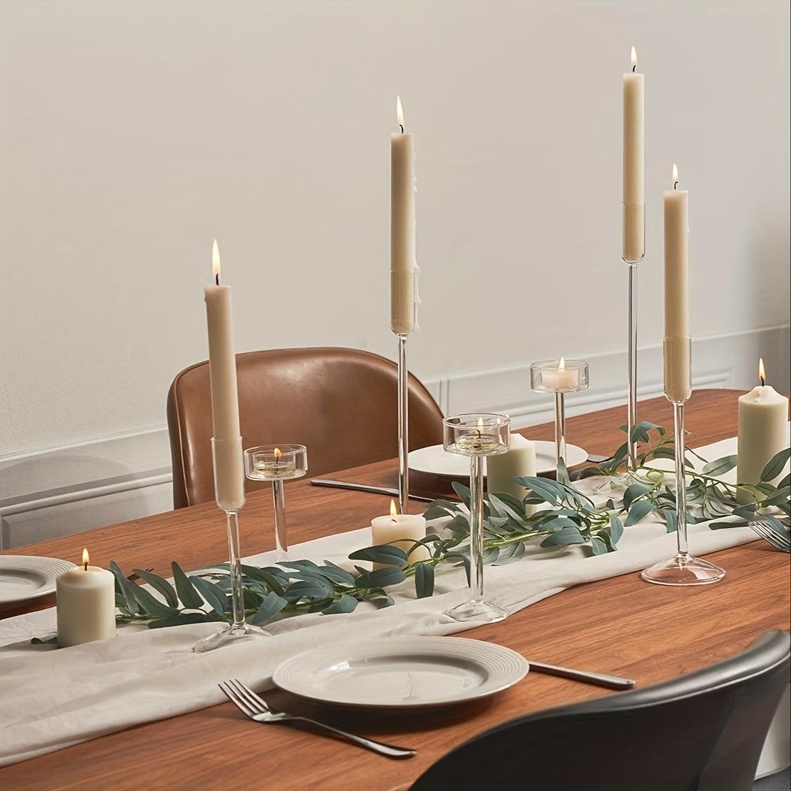 Embrace the confluence of tradition, artistry, and modern design with our Hand-Blown Glass Tea Light Candle Holders Set. Whether you're planning an intimate wedding, a grand party, or a serene dinner setting, these candle holders promise to elevate the ambiance. Their clear glass design magnifies the flame's dance, casting a warm, inviting glow across the room. Catering to diverse needs and preferences, these holders are available in three sizes: