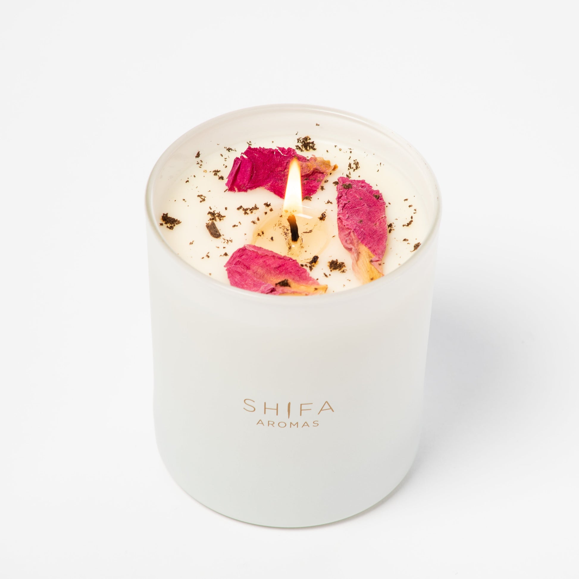 Midnight Rose is a sensual fragrance that opens with Mandarin, Rose Otto, Lily, Chamomile & soft notes of Peony resting elegantly on a base of rich Musk, Amber and Patchouli. The luxury glass candle and diffuser are infused with the finest aromatic Oud wood and Peony petals.
