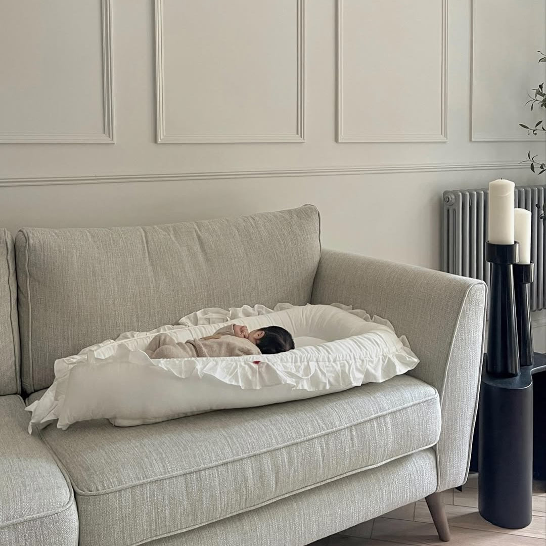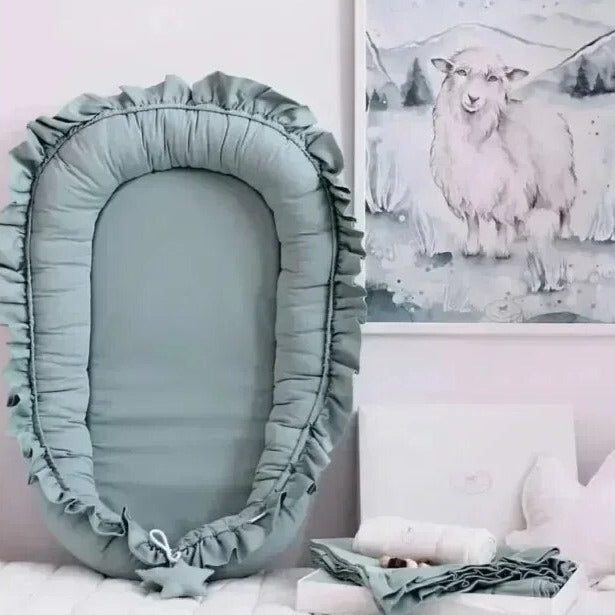 Portable Padded Lounger Baby Nest Pod & Bed with Frill Detail - 6 Colours